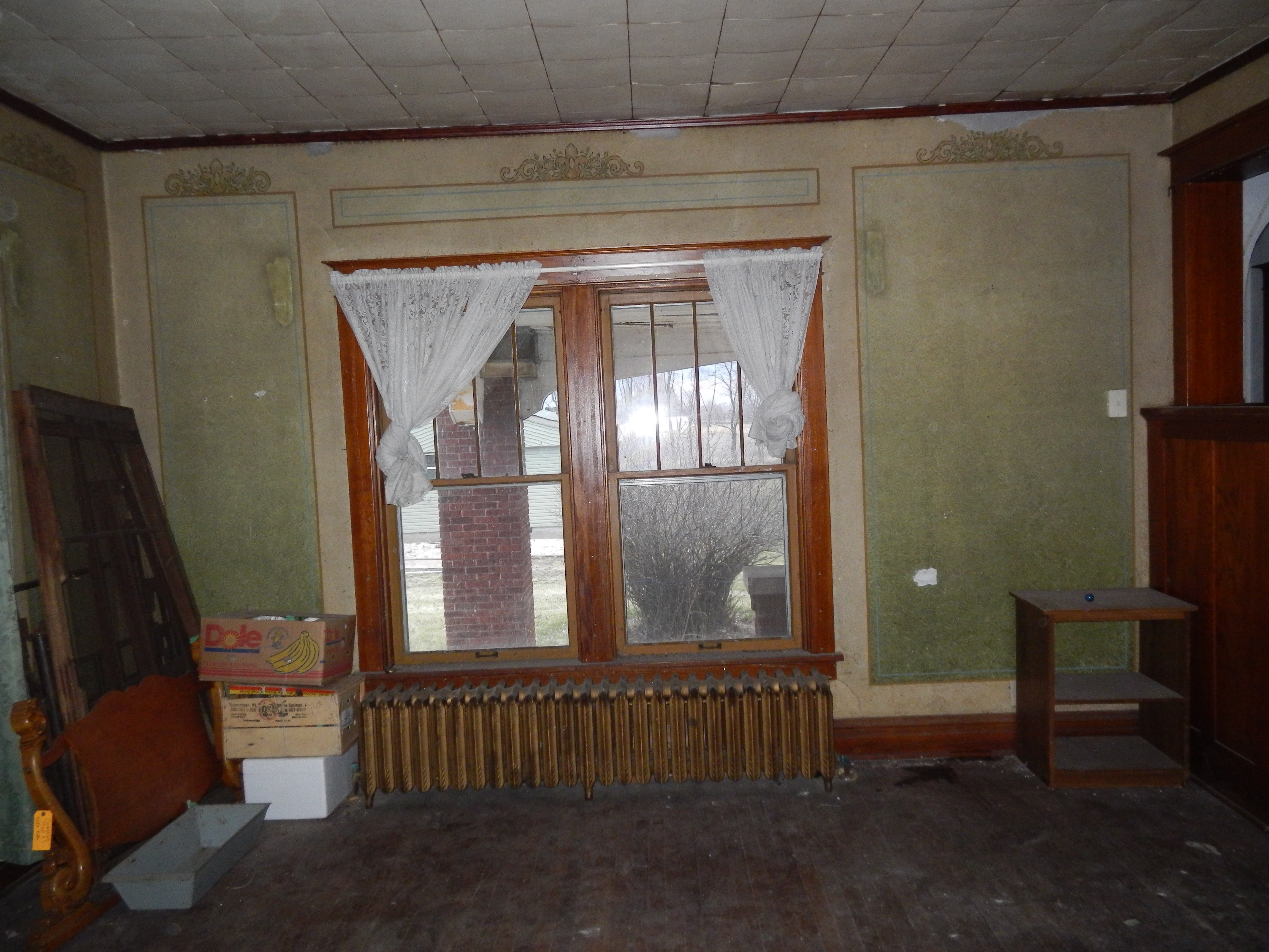 The plaster walls of the main room were painted by local artisans, the Diedams. The walls were refurbished ahead of Josiah and Stella Portteus's 50th wedding anniversary in 1946.